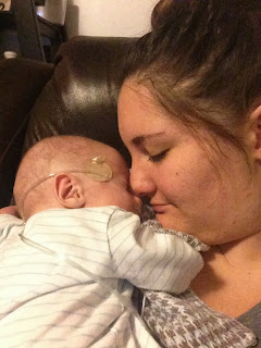 Will came home on Saturday November 2, which just happened to be his 4 month birthday! That week was a crazy one. The doctors had started talking about discharge with us and said it (most likely) be that week, but the previous Sunday (oct 27), Will had a really off day and wasn't wanting to eat anything. That made us nervous and we thought we would be staying longer because of it. BUT he picked up right where he left off eating the next day. The next few days went by so quickly! The nurses began doing all the discharge teaching with us and we were scheduled to "room-in" on friday night. Luckily Matt had already taken Friday off of work so it was going to work perfectly.